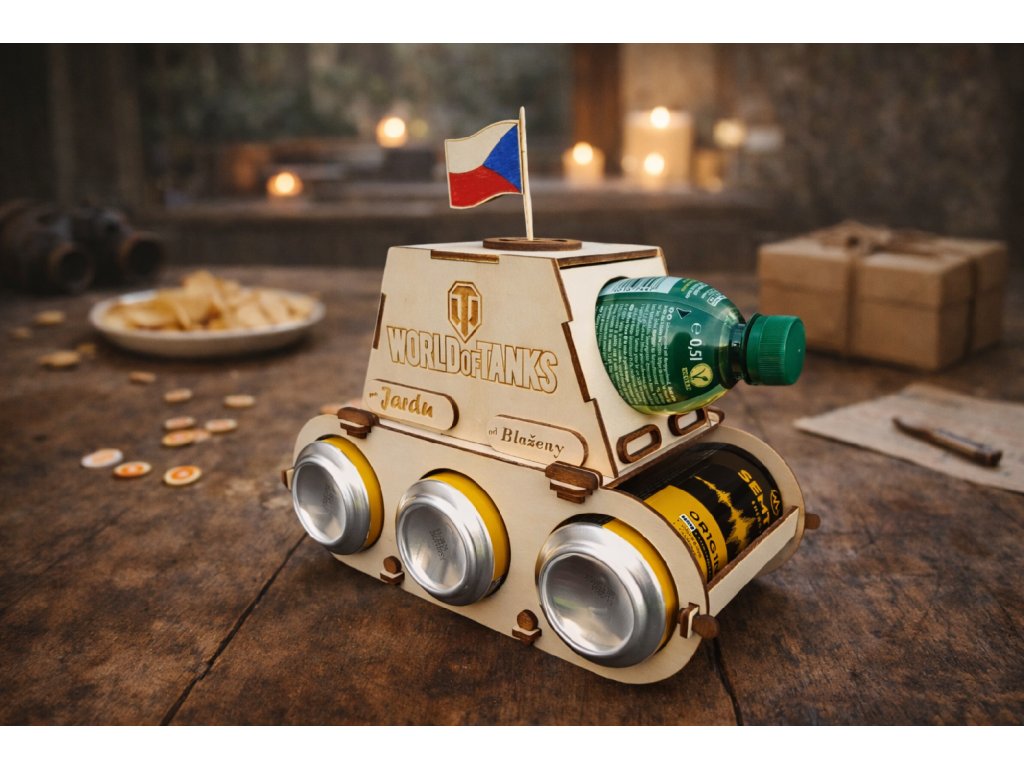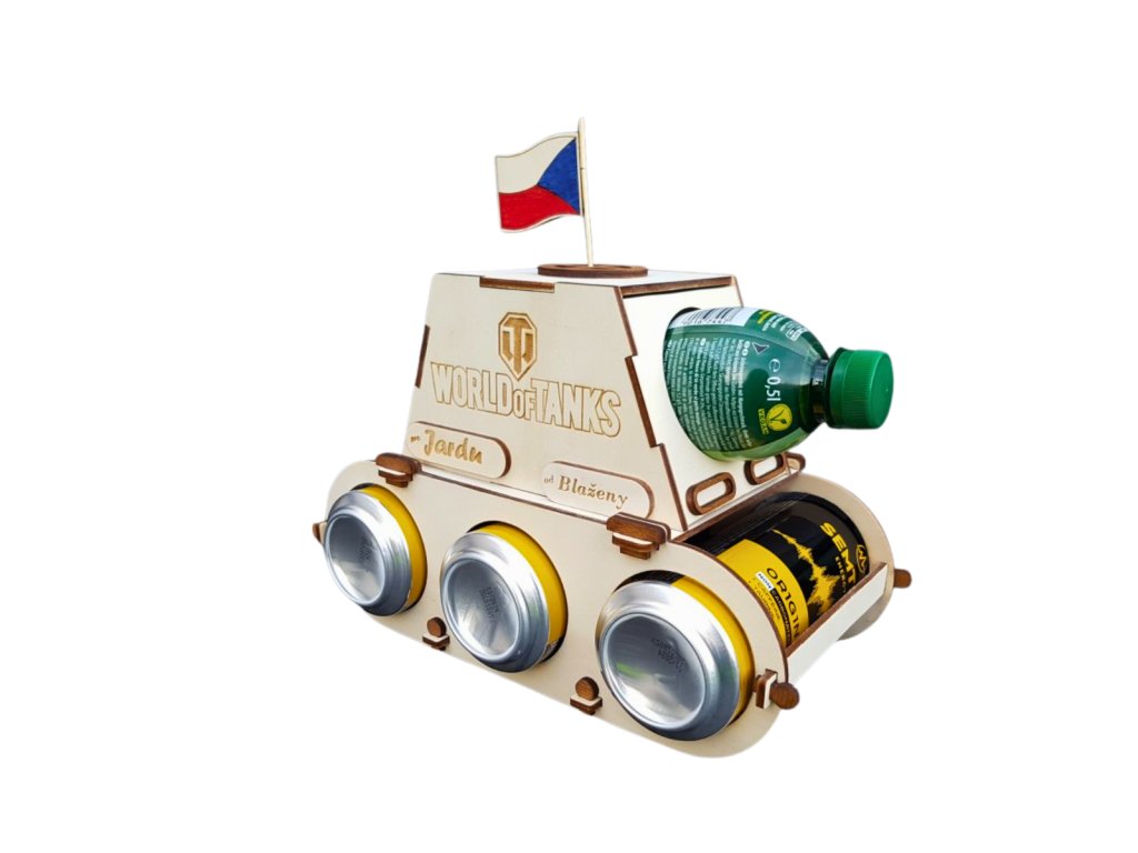Tank na 3 plechovky piva nebo limonády a jednoho nápoje ve skle jako kanon.