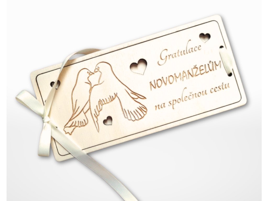 Obálka na peníze - dřevo - Holubičky