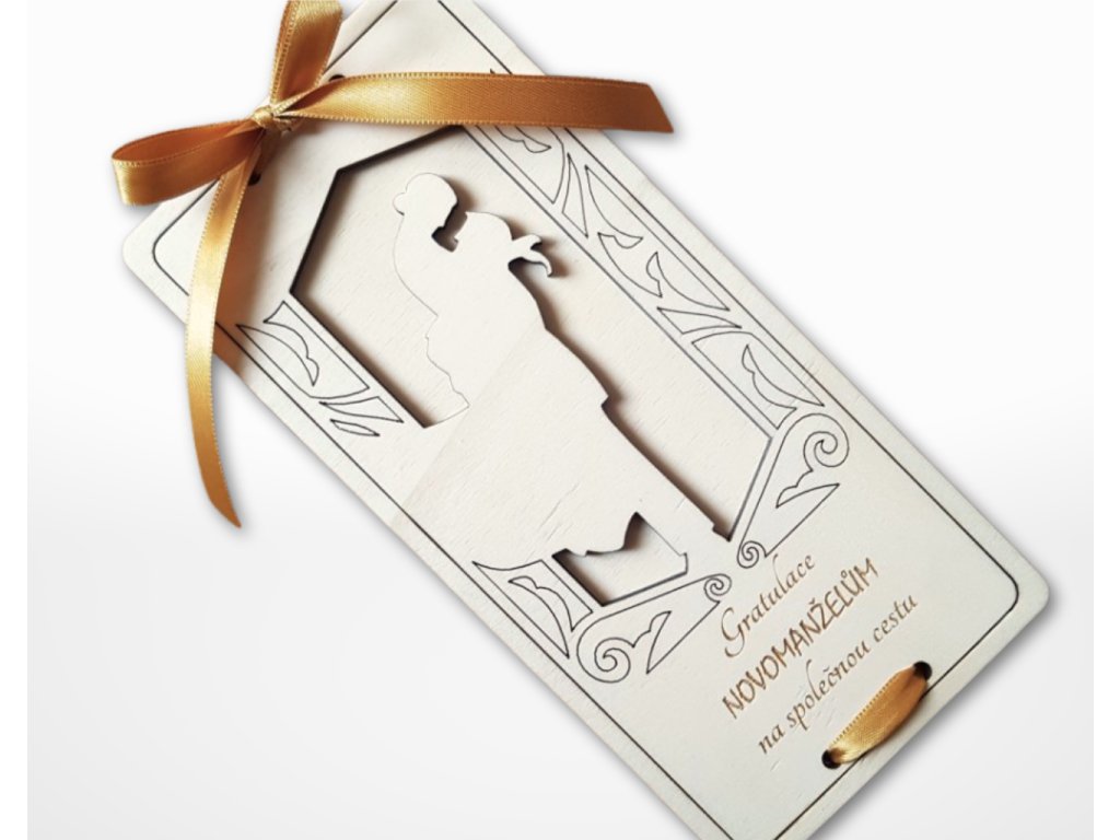 Obálka kapsa na peníze - dřevo - Ženich a nevěsta