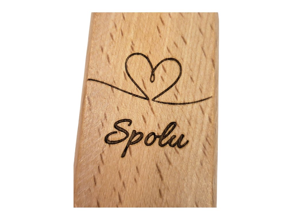 Klíčenka s motivem „Spolu“ a jemným symbolem srdce.